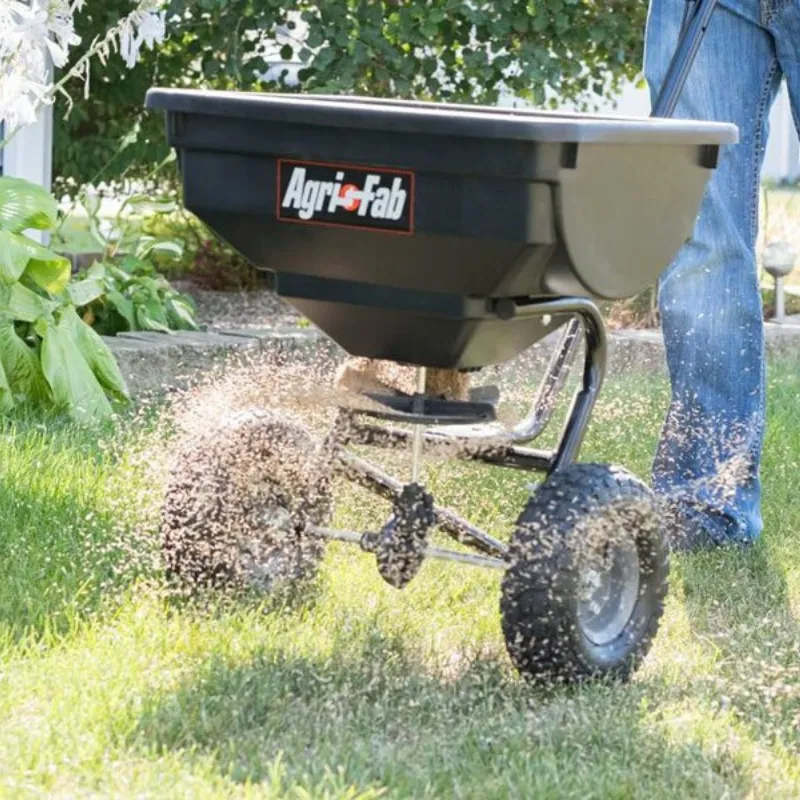The Agri-Fab 45-0531 push spreader is built to last, thanks to its durable poly hopper and spread-plate. The Agri-Fab 45-0531 is suitable for use with potentially corrosive materials like salt and granular fertilisers. A push-type unit, its generous spread-width (up to 12’) and capacious 85lbs hopper make it possible to cover an area up to 14,200 square feet.