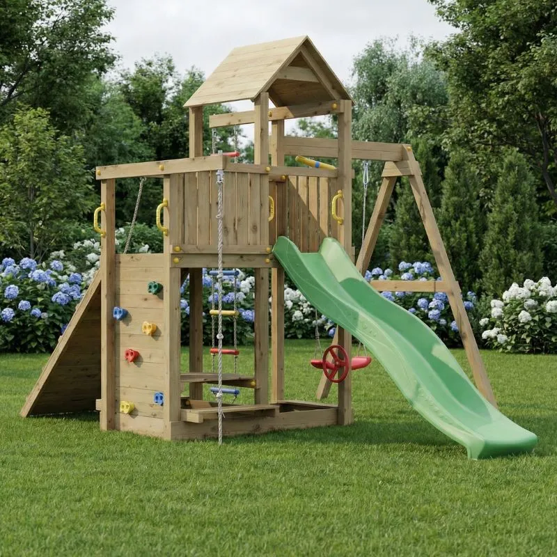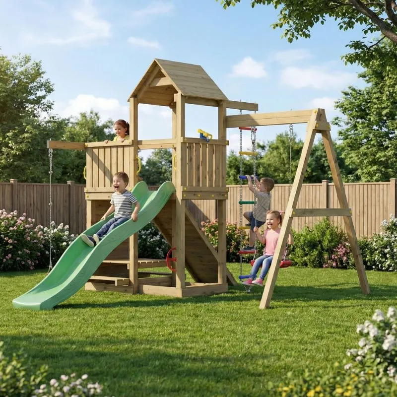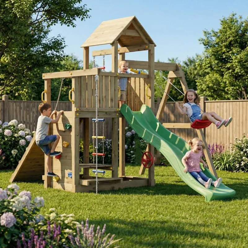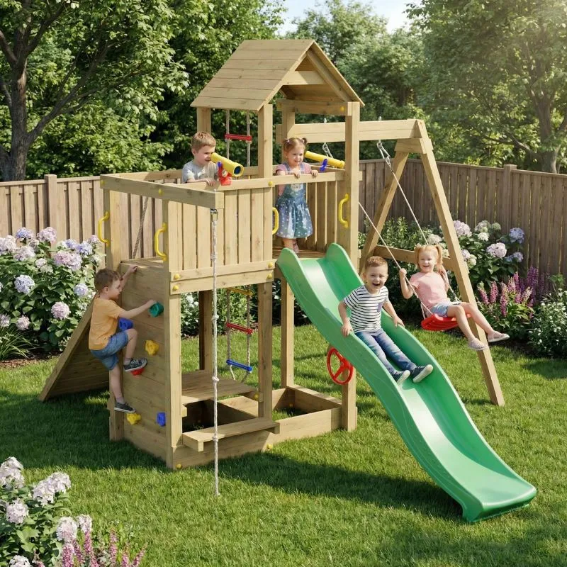 Get ready for endless adventures with the Fungoo Activer climbing frame! This delightful wooden play structure promises hours of fun and imaginative play for kids, making it the perfect addition to your backyard. Whether they’re sliding, swinging, or climbing, the Activer has something for every little explorer.