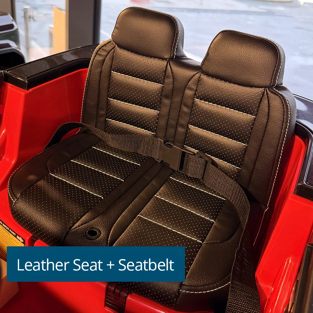 With secure grip leather seats and a seatbelt for secure riding and puncture proof rubber EVA wheels this suv can be drove by children using the steering wheel and foot pedal, while parents can drive at any time using the parental remote control.