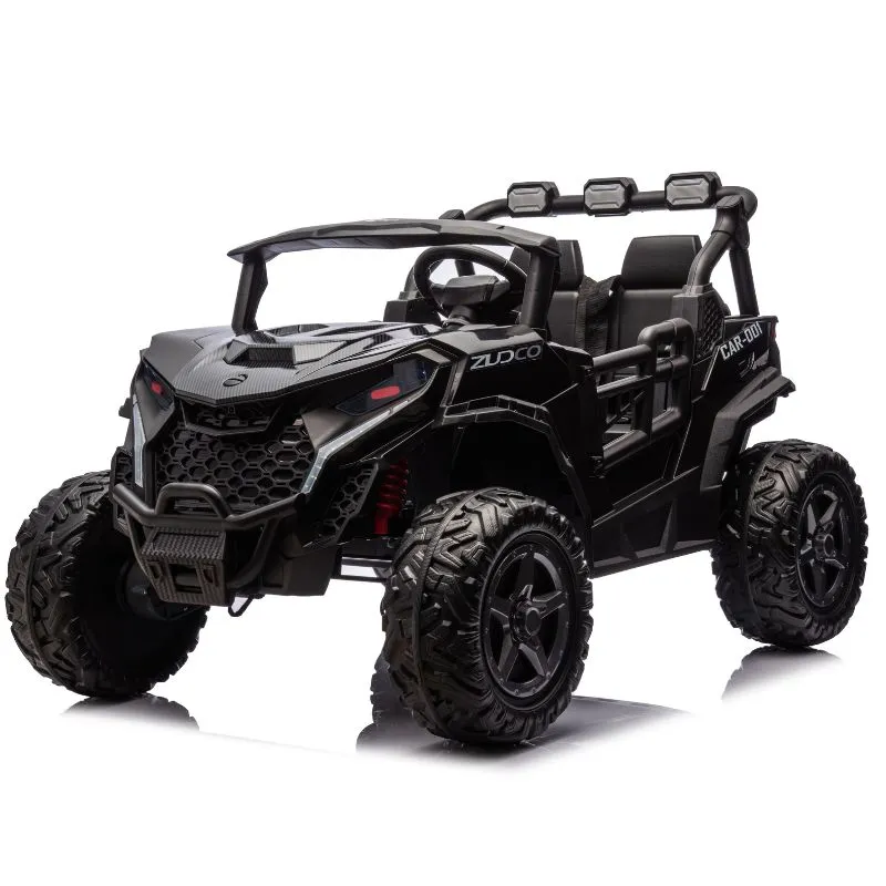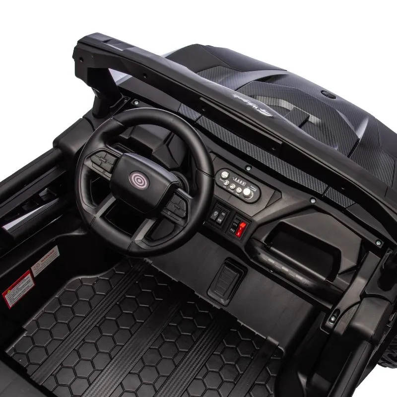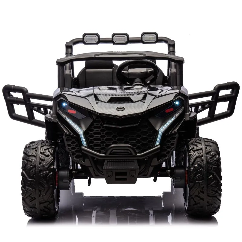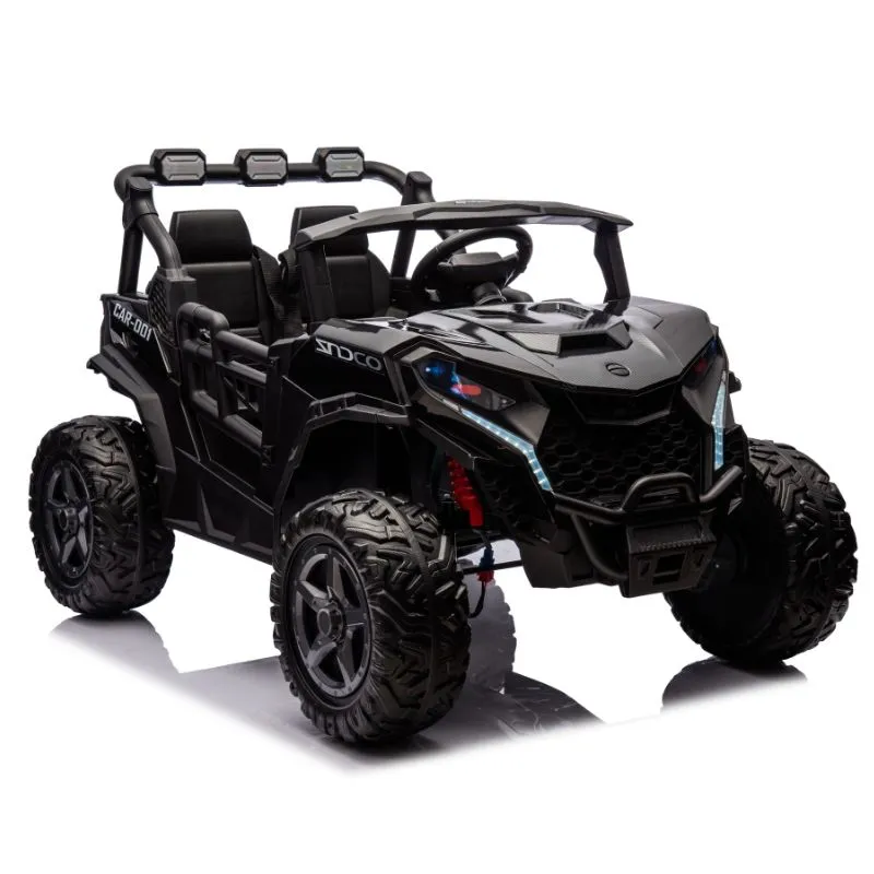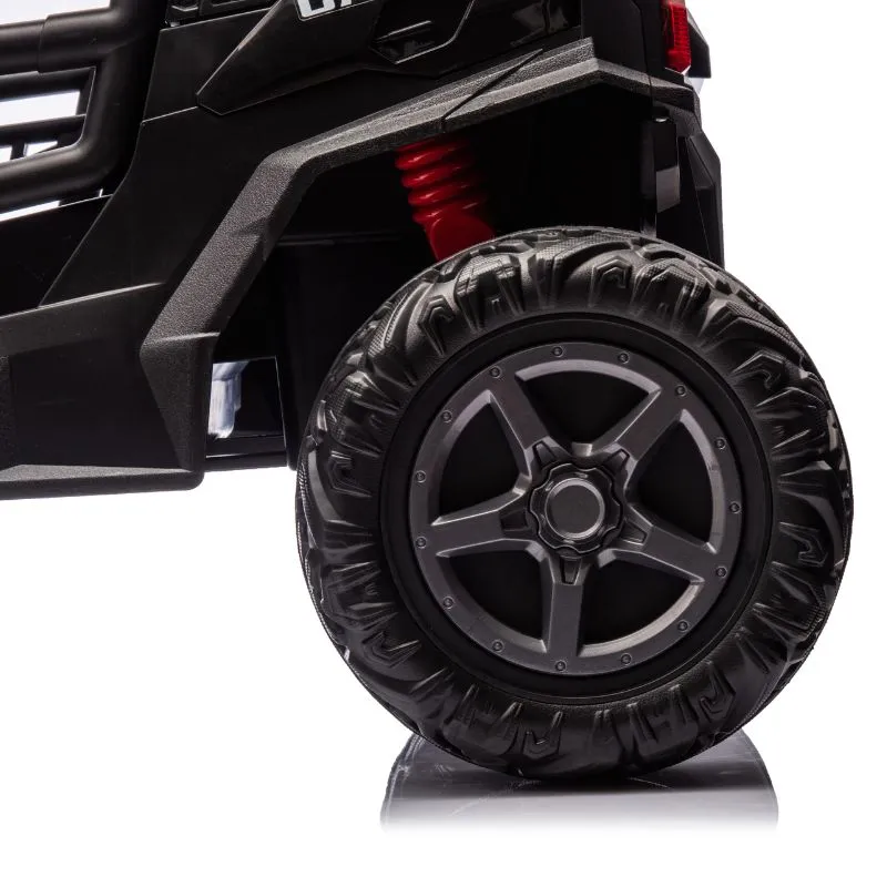 With two leather seats and seatbelts for secure riding and puncture proof EVA rubber wheels this UTV can be driven in 2 or 4 wheel drive by children using the steering wheel and foot pedal, while parents can also ride at any time using the 2.4GHz parental remote control.
