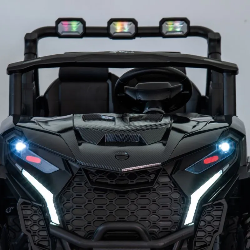The MiniMotor Co. NightHawk 4x4 ride-on has working lights and side doors that open for ease of access.