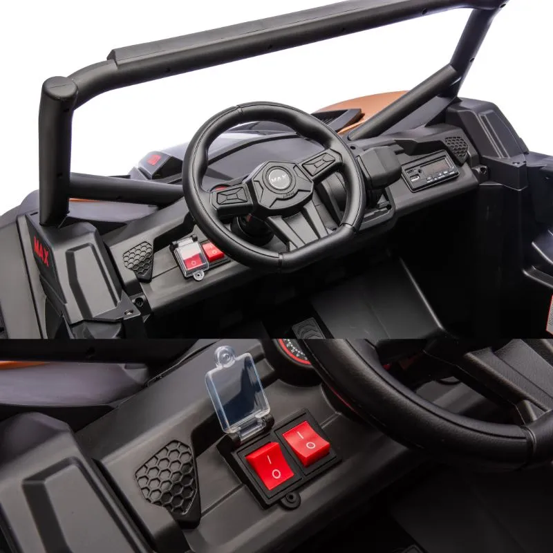 With two seats and seatbelts for secure riding and puncture proof EVA wheels this UTV N1 can be driven by children using the steering wheel and foot pedal, while parents can override at any time using the 2.4GHz parental remote control.