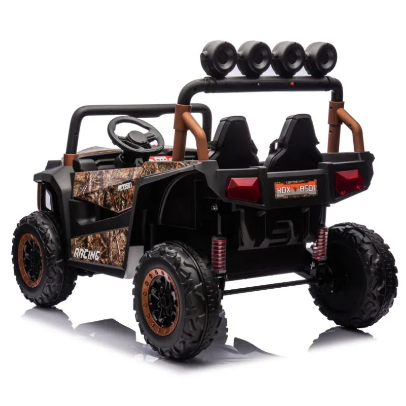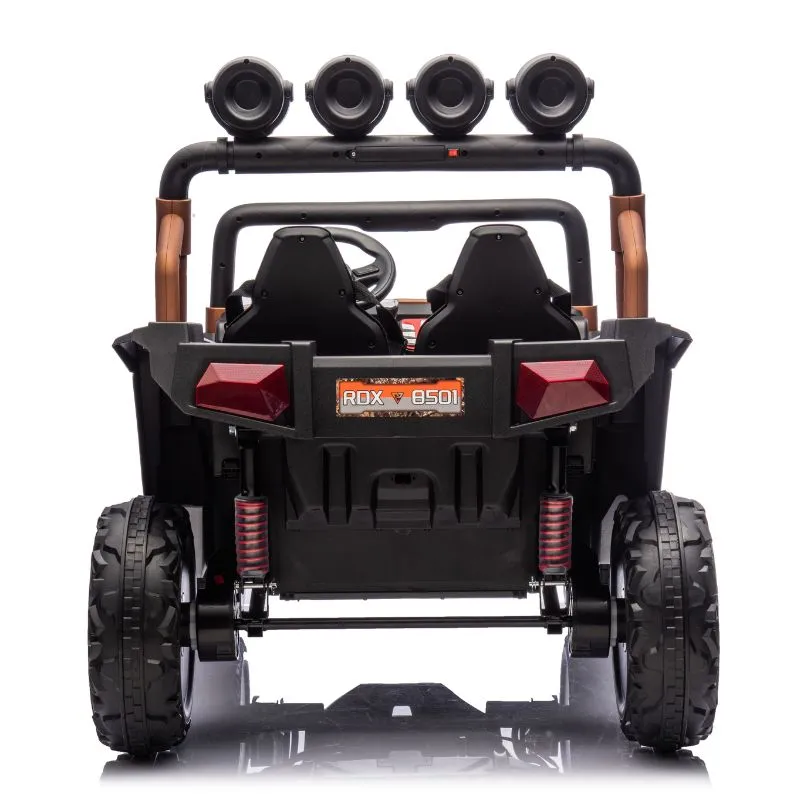 With two seats and seatbelts for secure riding and puncture proof EVA wheels this UTV N1 can be driven by children using the steering wheel and foot pedal, while parents can override at any time using the 2.4GHz parental remote control.