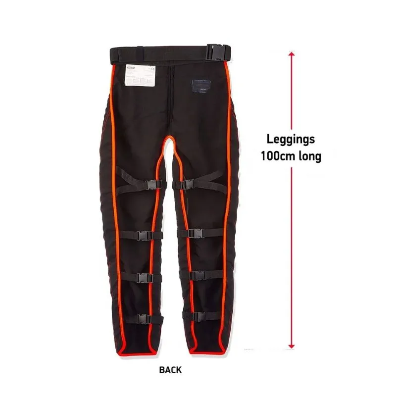 The trousers, suitable for all sizes, feature Type A (Class 1) protection on the front and are worn over normal pants. With an adjustable belt and 4 adjustable straps on each leg side for a comfortable fit. Made of 6 layers of breathable polyester, the leggings are lightweight, comfortable and resistant to wear. Length: 100 cm.