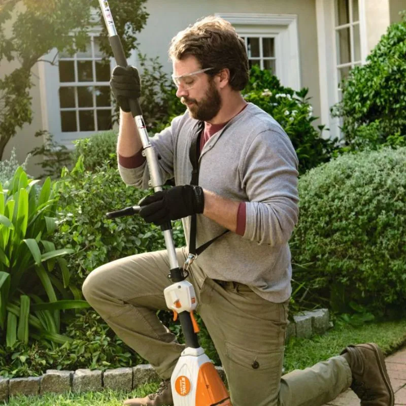 The STIHL KMA 120 R is a battery-powered KombiEngine designed for professionals taking on a variety of gardening, landscaping and maintenance tasks throughout the working day. The KMA 120 R is battery powered meaning it has low noise emission – making it ideal for work in noise-sensitive areas such as schools, hospitals and quiet neighbourhoods. It’s powered by a 36-volt lithium-ion battery and is quiet, efficient and powerful enough to tackle a variety of tasks - whether it’s pruning, trimming, mowing, clearing or cutting! Compatible with all KombiTools (except FSB-KM), attaching and changing tools is made simple too – all you need to do is insert your desired tool into the shaft and tighten to secure it in place.