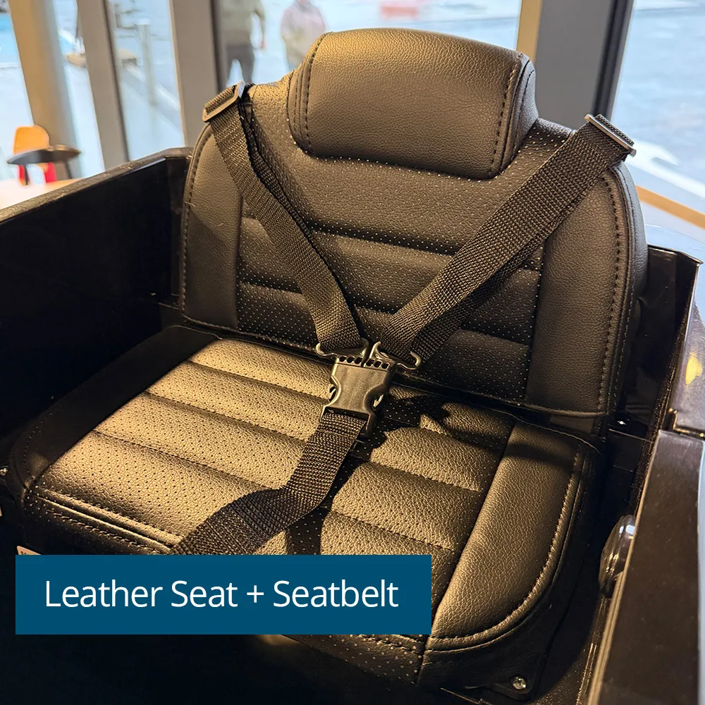 With secure grip leather seats and a seatbelt for secure riding and puncture proof rubber EVA wheels this car can be drove by children using the steering wheel and foot pedal, while parents can also ride at any time using the parental remote control.