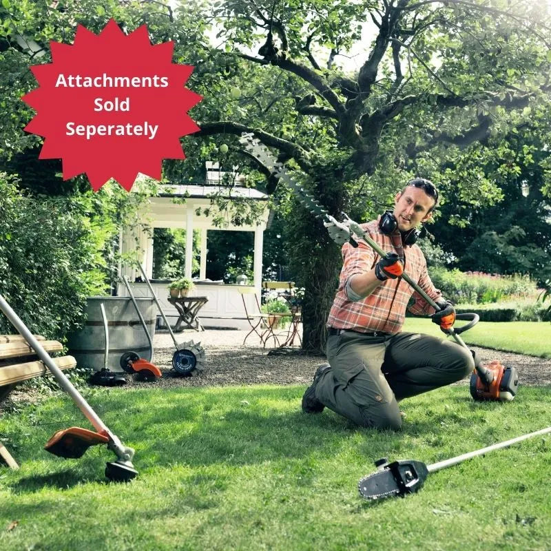Apart from the trimmer head, the 129LK can easily be equipped with a number of other pro-quality tools: blower, pole saw, cultivator, hedge trimmer and edger, by changing the lower part of the shaft - These attachments are sold seperately.