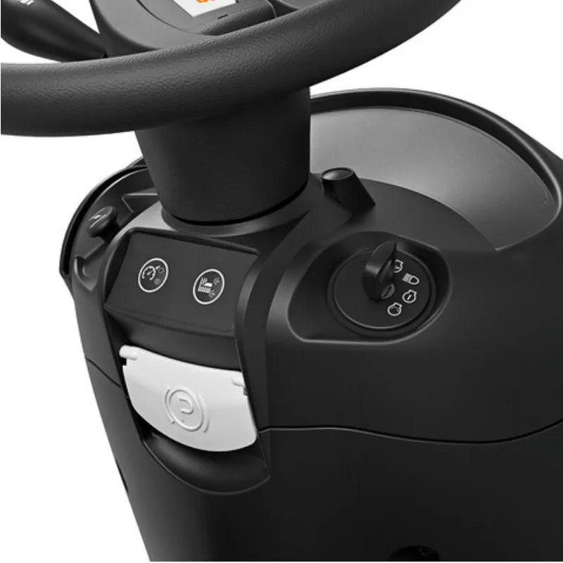 Thanks to the high-contrast LCD display, you can easily see all the important ride-on mower functions; including operating hours, battery voltage, grass catcher box filling level and emptying time, fuel tank filling level, oil pressure monitoring, mowing deck activation.