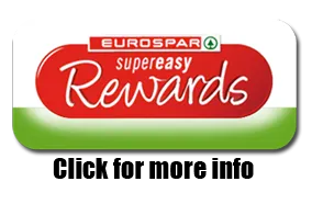 Sign up to our Eurospar Supereasy Rewards and collect points on your shopping which can then be used as money off your shopping bill. Rewards customers also receive extra discount on selected products which are on promotion. Click the SuperEasy Rewards logo below for more details.